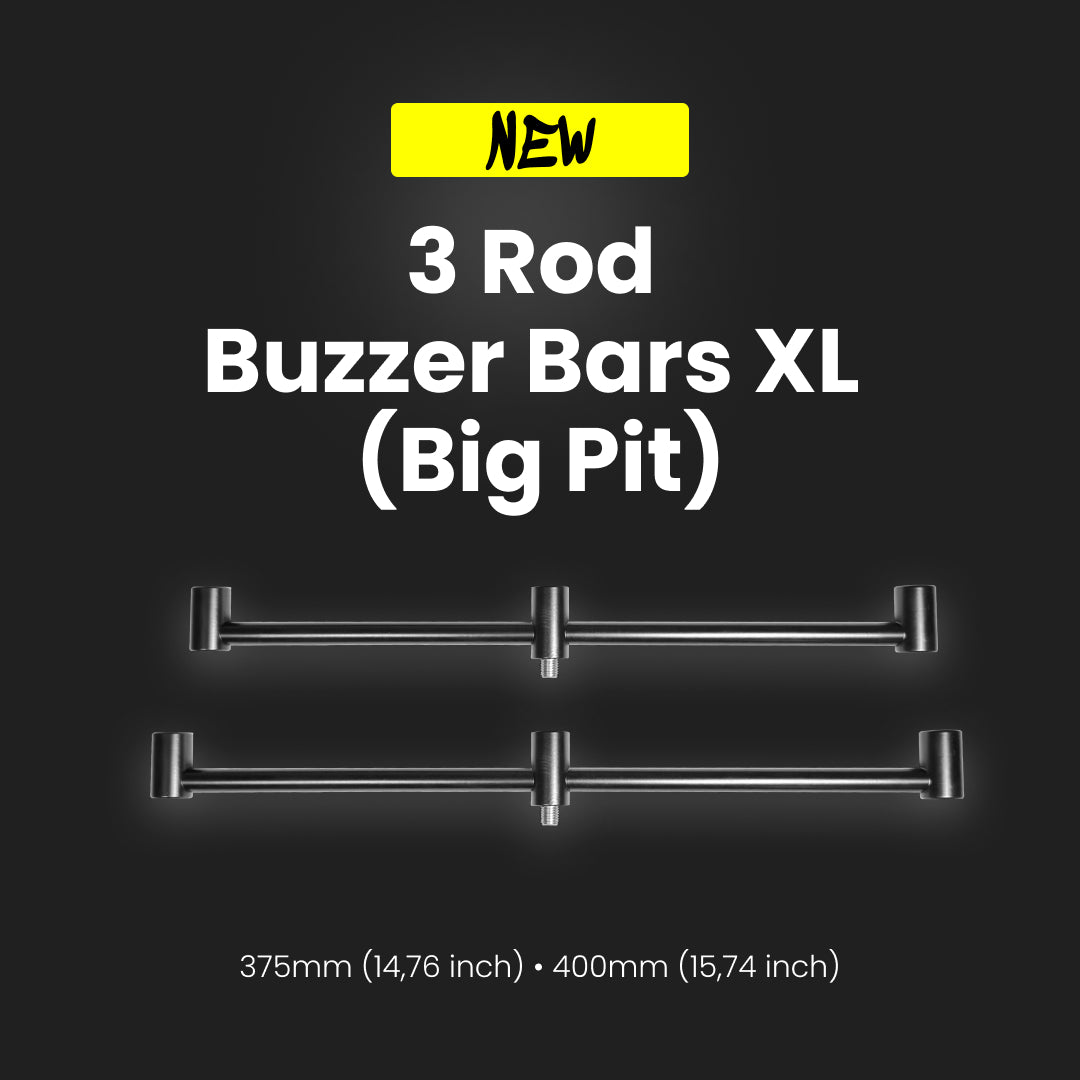 Schluss mit Platzmangel auf dem Rod Pod. Unsere XL-Buzzer Bars sind die Lösung für alle Angler, die mit großem Gerät fischen. Die exklusive Breite sorgt dafür, dass selbst massive Big Pit Rollen (Größe 10.000–14.000) sicher nebeneinander liegen, ohne zu verkanten.